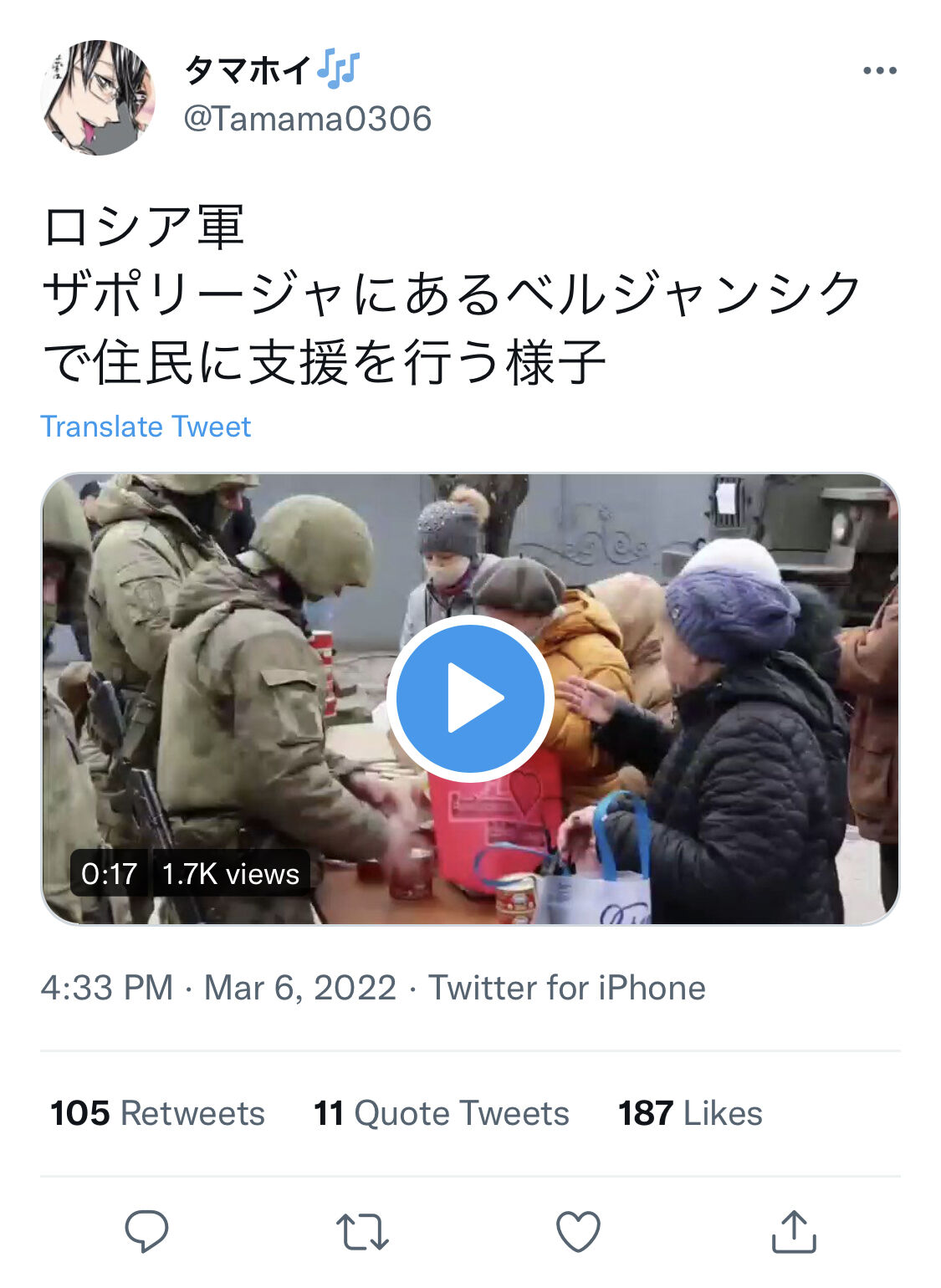 【朗報】ロシア軍の善行が日本人によって拡散され始める
