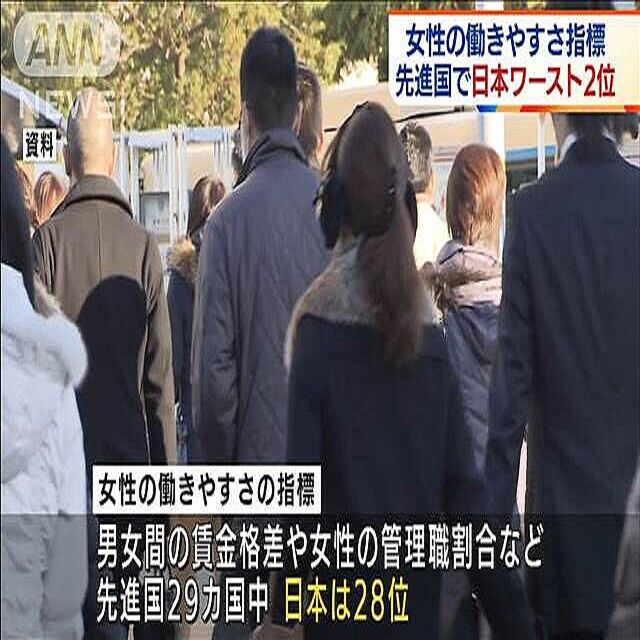 女性の働きやすさ指標 先進国で日本ワースト2位