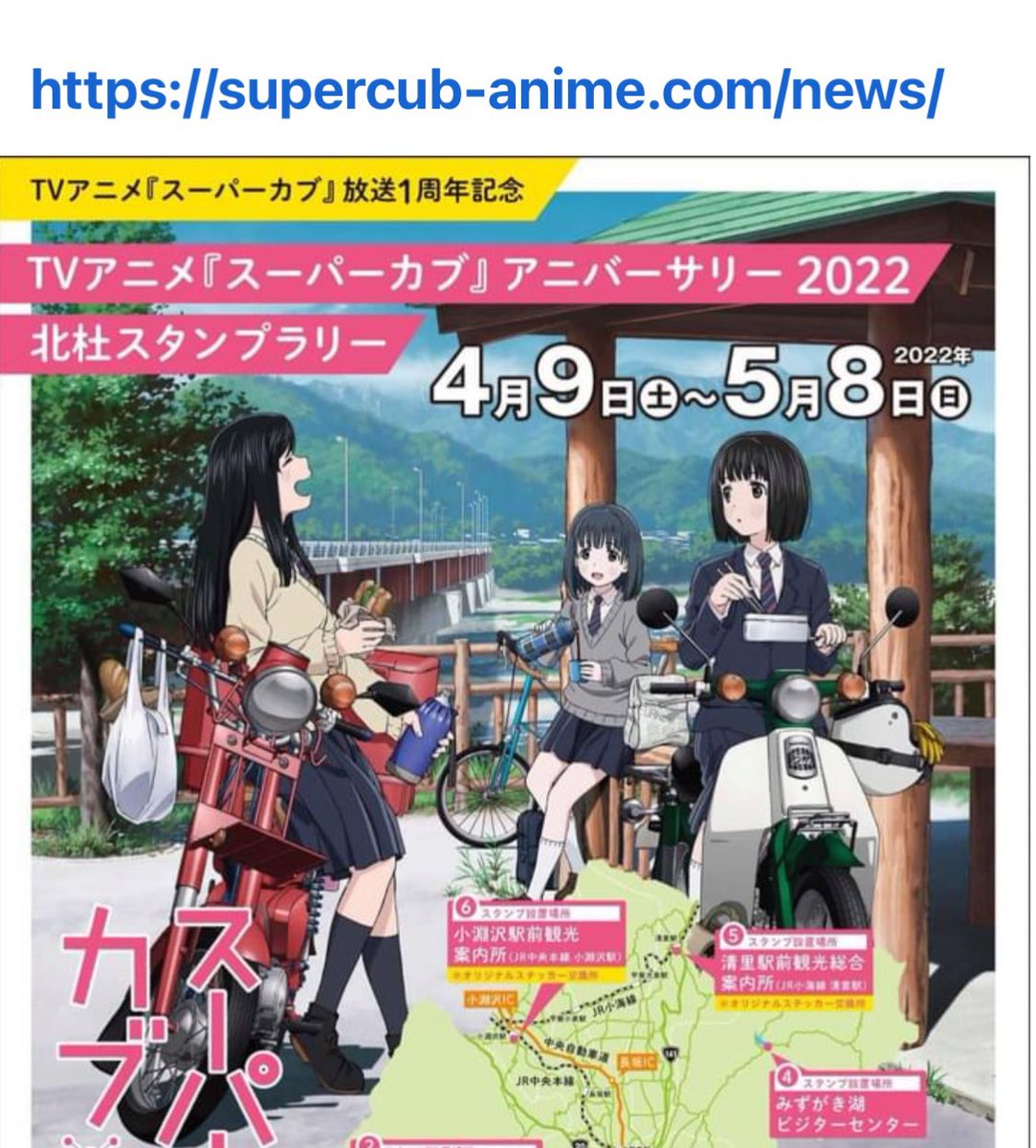 人気アニメ「スーパーカブ」放送1周年イベント 聖地の山梨県北杜市でスタンプラリー開催