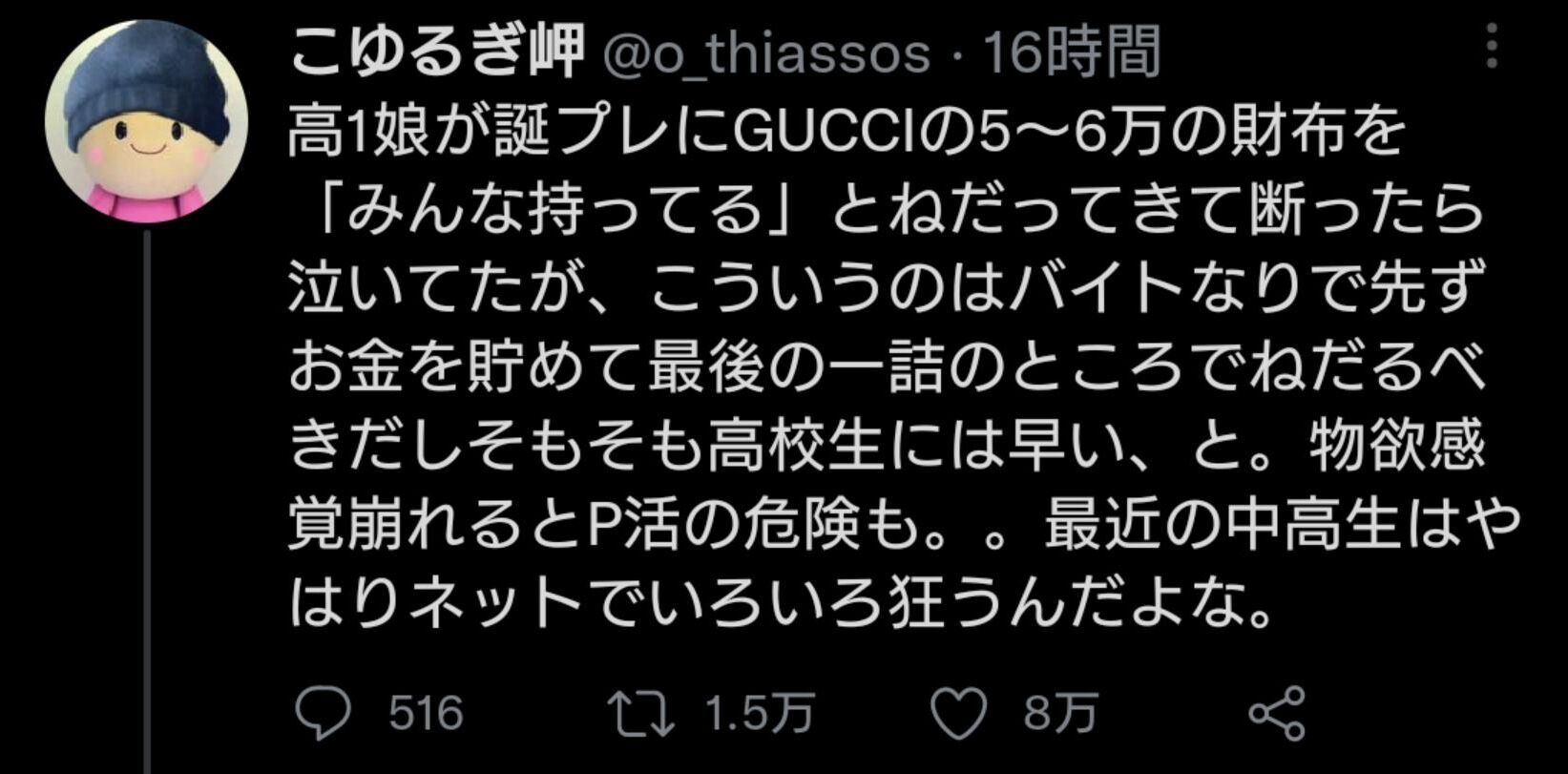 【悲報】Twitter、「高校生にグッチの財布を買ってあげるべきか」で大荒れWWWWWWWWWWWWWWWWWWWWWW