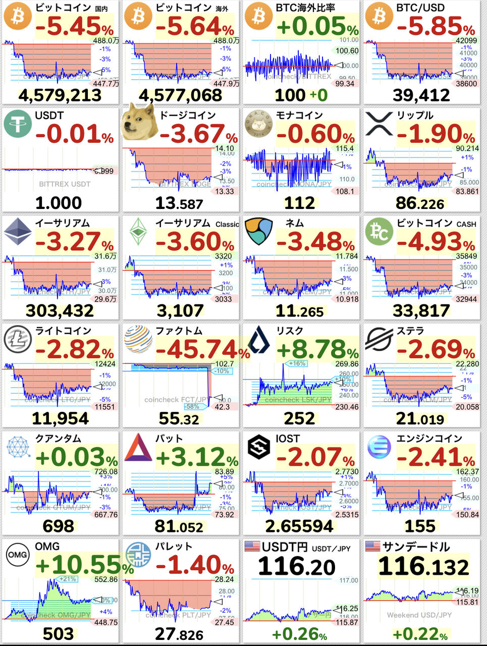 【悲報】ビットコイン、昨日から30万円ほどの下落