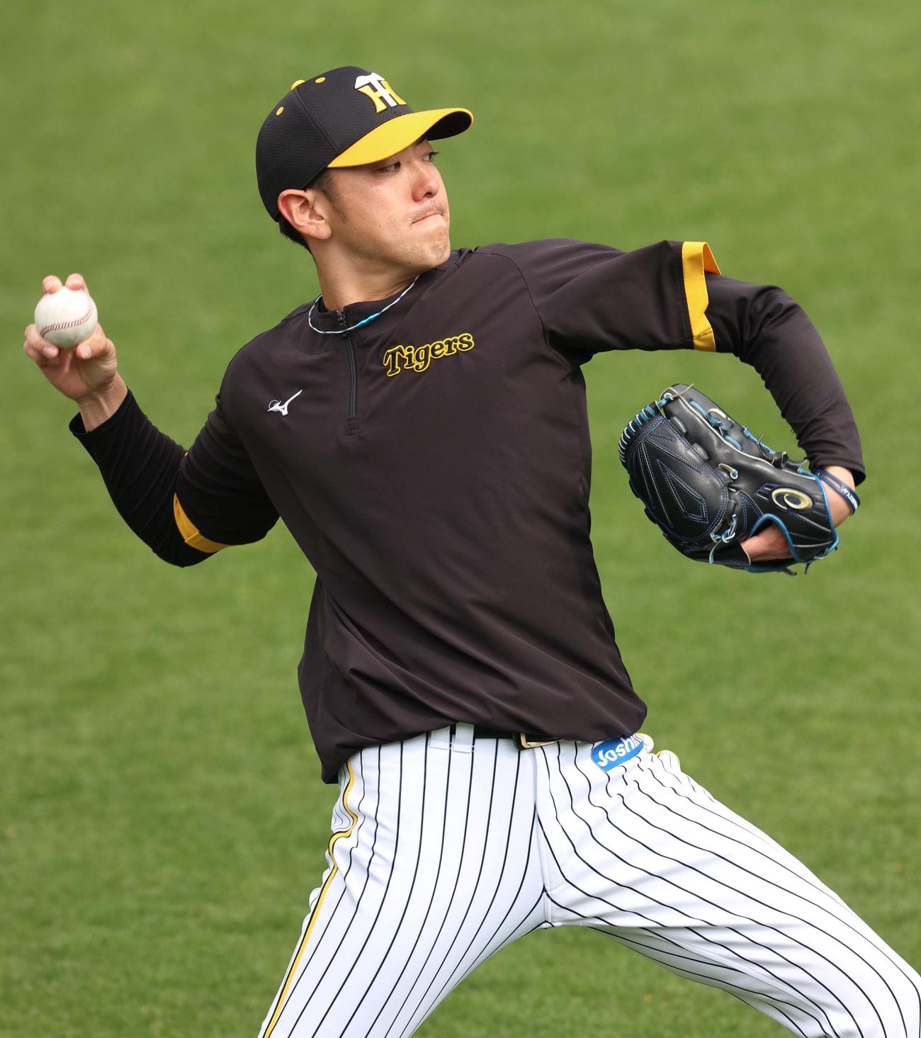 4回2安打無四球無失点と好投した13日の巨人戦から一夜明け。甲子園で投手指名練習に参加した右腕は「中継ぎで投げるより球数が多いので、疲労がすごくあります」と充実の汗を拭った。先発バックアップと中継ぎを両にらみする「ジョーカー」は開幕ローテ入りの可能性もある。「(ローテに)入って投げたい気持ちになっています」と目をギラつかせた。