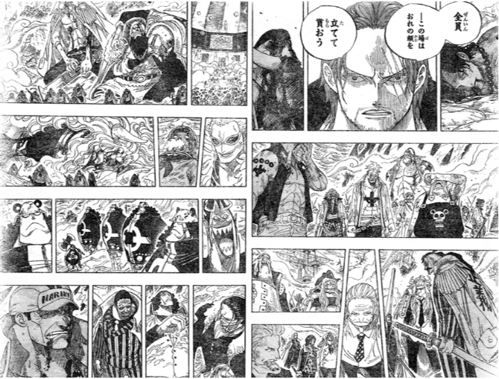 【画像】シャンクス「戦争は終わりだあ!!誰か文句ある?w」 元帥三大将七武海白ひげ海賊団「…」←全員ビビってて草www