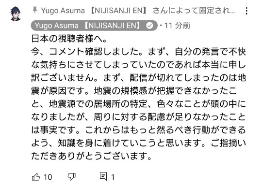 【悲報】人気Vtuberさん、地震に対し「へぇ~」と冷めた反応をし視聴者に叩かれ謝罪へ…