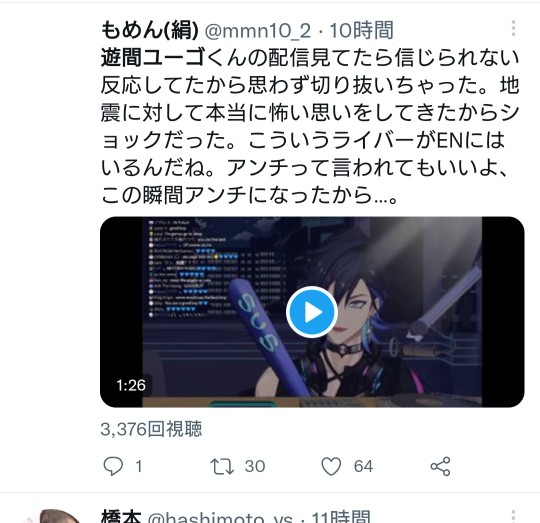 配信中に遭遇した地震に対して「へぇ~」と冷めた反応したせいで視聴者から批判の集中放火