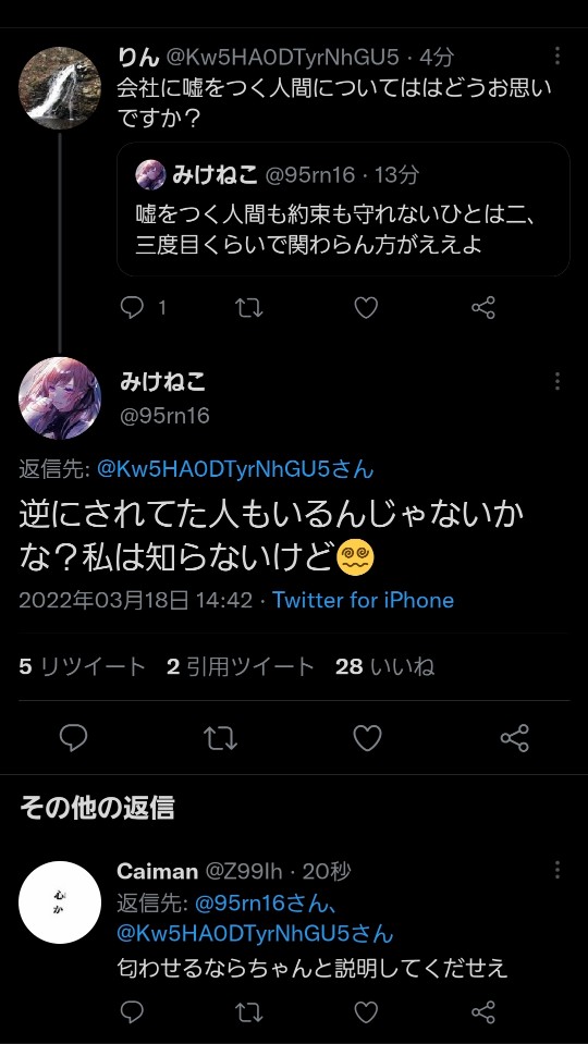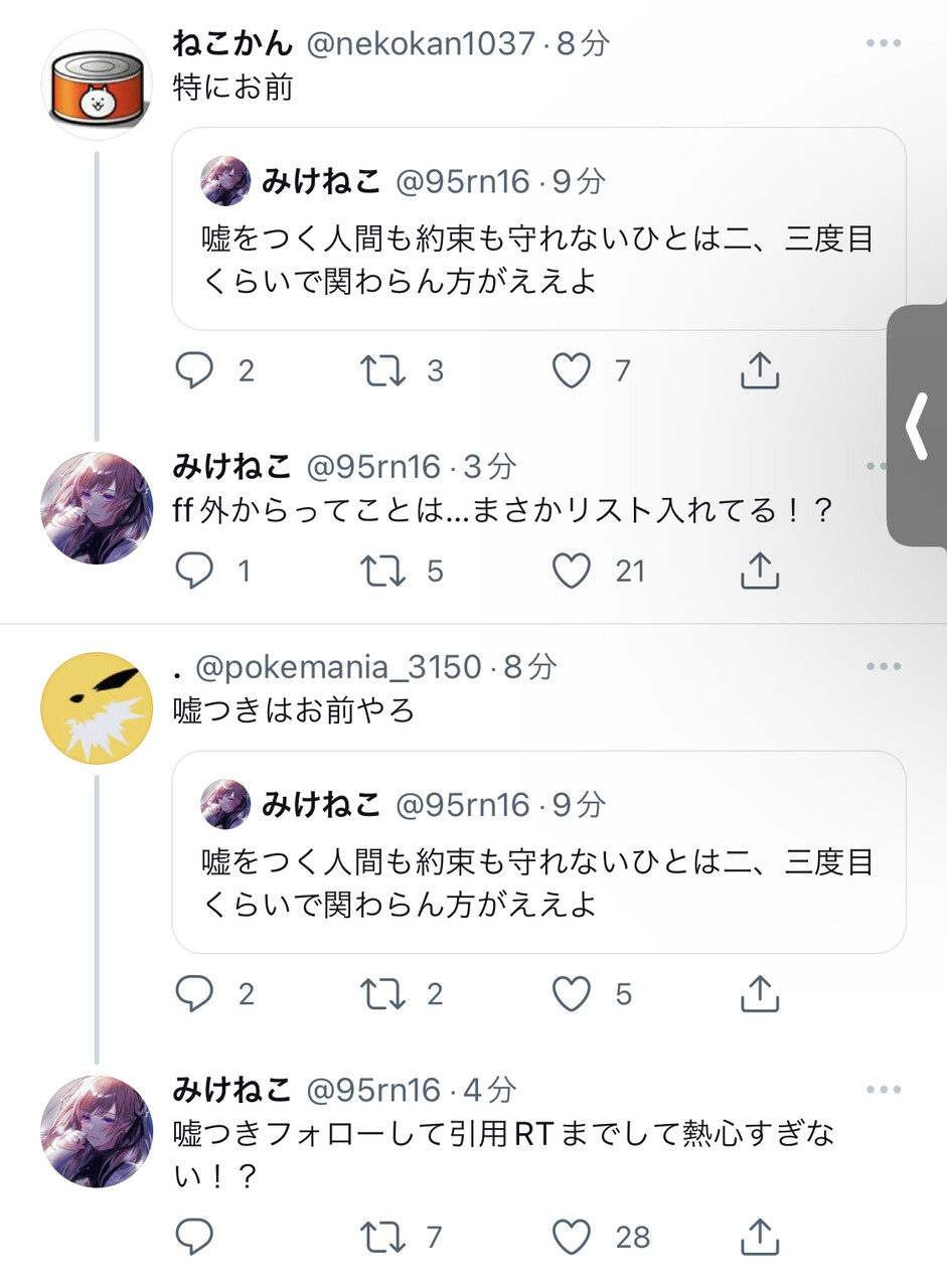【画像】るしあの中身のみけねこさん「嘘つきの人間とは関わらない方がいい」→アンチとレスバに発展してしまう