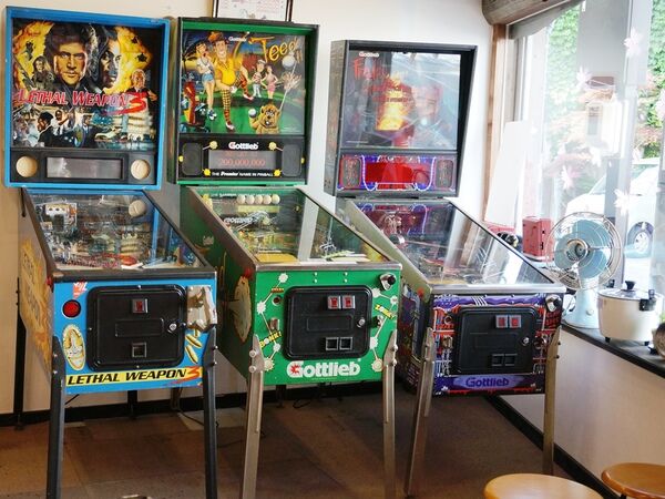 店内にはレトロ台から最新台まで、100台を超えるピンボールが所狭しと並べられています。