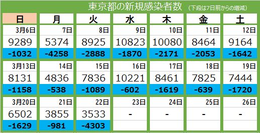 【注目】まん延防止解除初日、果たして・・・本日(3/22)の気になる東京都の新規感染者数は⁉