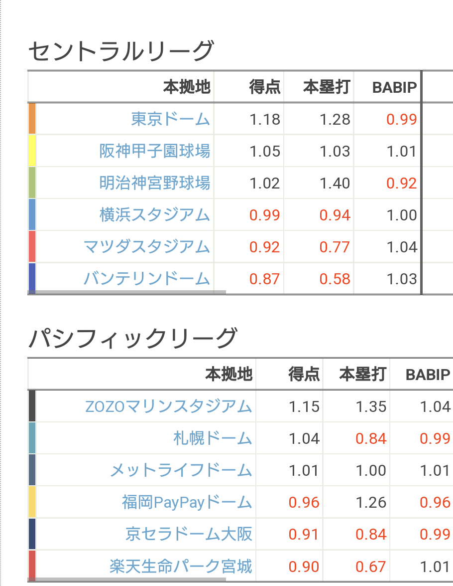 12球団2022年パークファクターWWWWWWWWWWWWWWWWWWWWWWWWWWWW