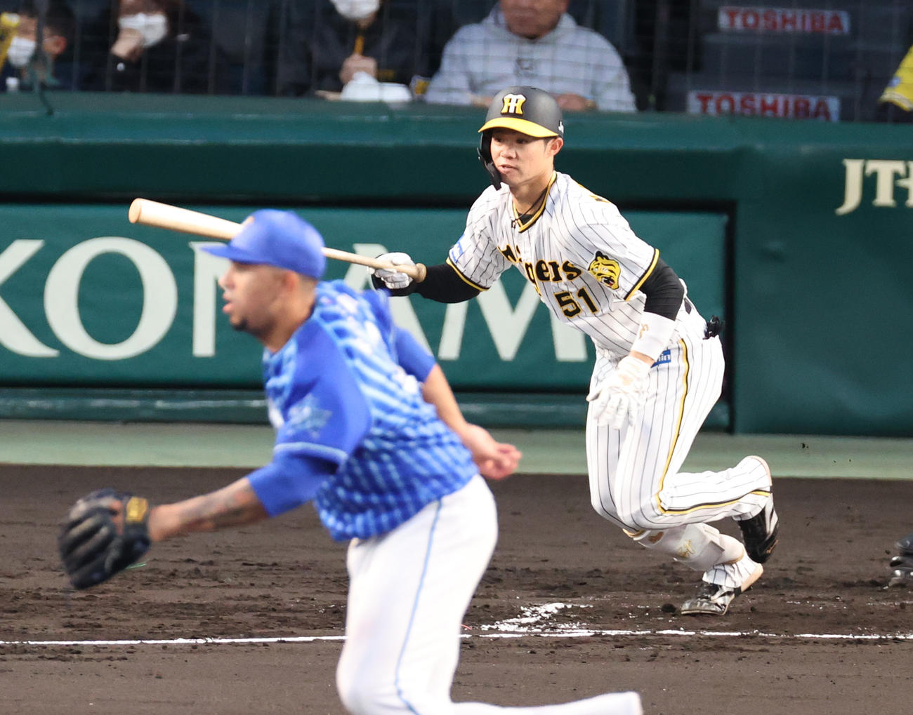 阪神の2番中野拓夢内野手(25)がわずか4球の先制劇を決めた。1回、1番近本が2球目を中前打。暴投で無死二塁となった直後の2球目、右腕ロメロの低め149キロツーシームを丁寧に引っ張った。