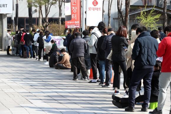 ▲ ソウル 中区(チュング)にあるロッテマートソウル駅店の前で、市民らがポケモンパンを購入するために開店前から待機している様子。