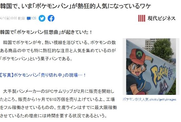 【韓国】ポケモンパンの爆発的人気に日本の反応・・・「また口先だけのNO JAPAN」