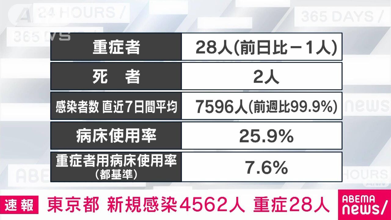 <新型コロナ・11日>東京都で新たに4562人感染、2人死亡 病床使用率25.9% – 東京新聞 |