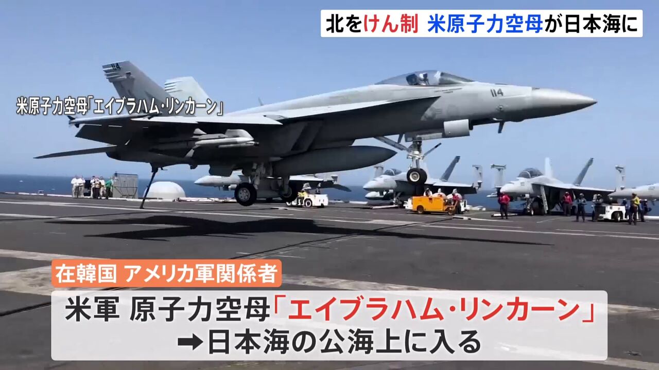 北朝鮮のICBM=大陸間弾道ミサイルの発射や核実験が懸念される中、アメリカ軍の原子力空母が日本海の公海上に入ったことがわかりました。