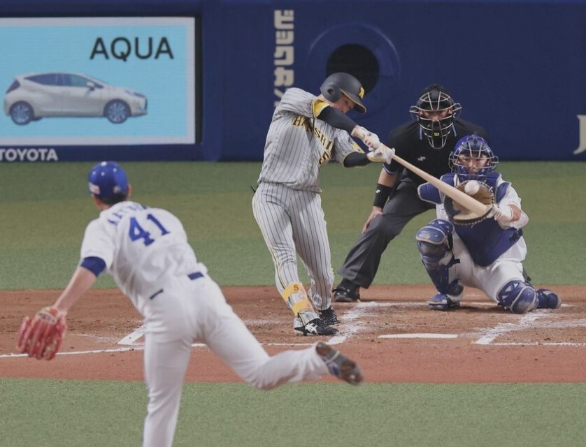 九回無死一塁で巡った第4打席で、中日・柳が内角高めに投じた97キロのスローカーブを引っ張りこんだ。チャンスは無死一、三塁に拡大。続く大山の中犠飛につなげて完封負けを阻止し、敗戦の中でも前向きにとらえたい一打となった。
