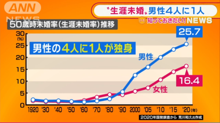 ■50歳男性の4人に1人が未婚という現実