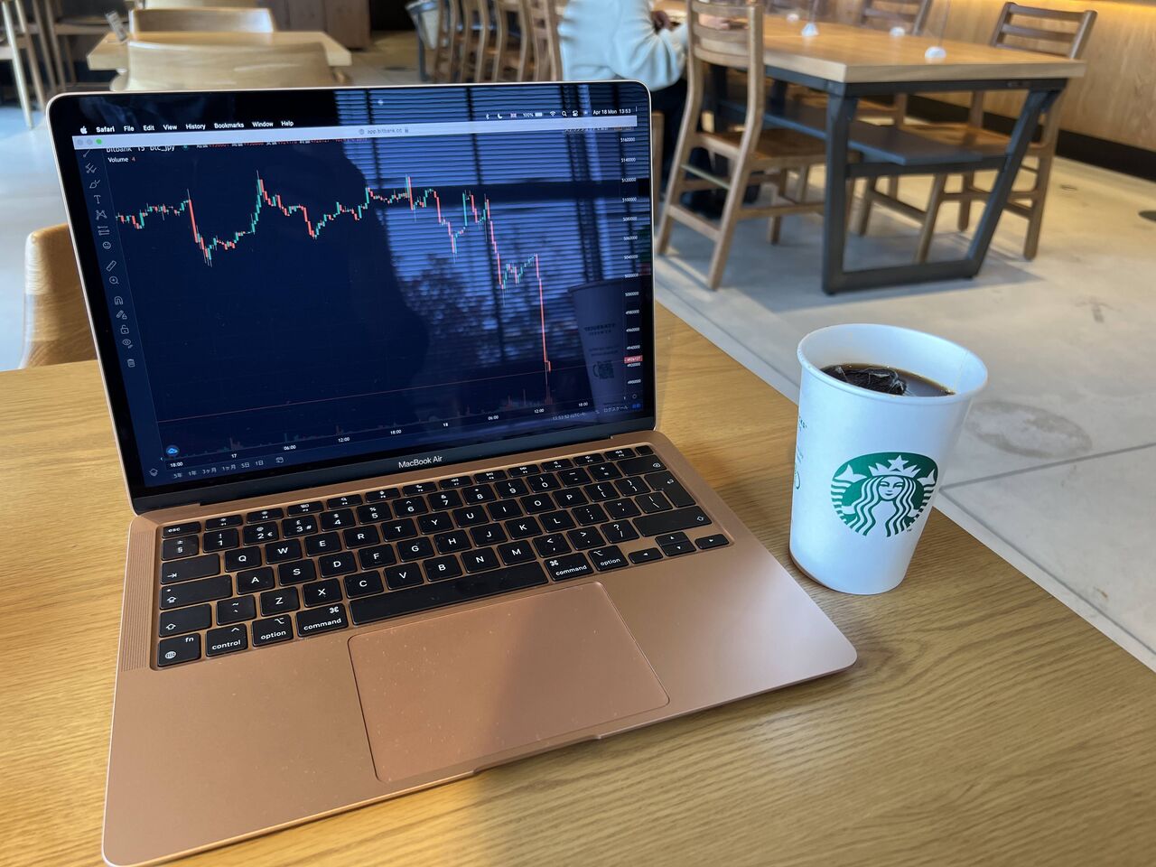 スタバでブラックコーヒー飲みながらビットコインのチャート見てる