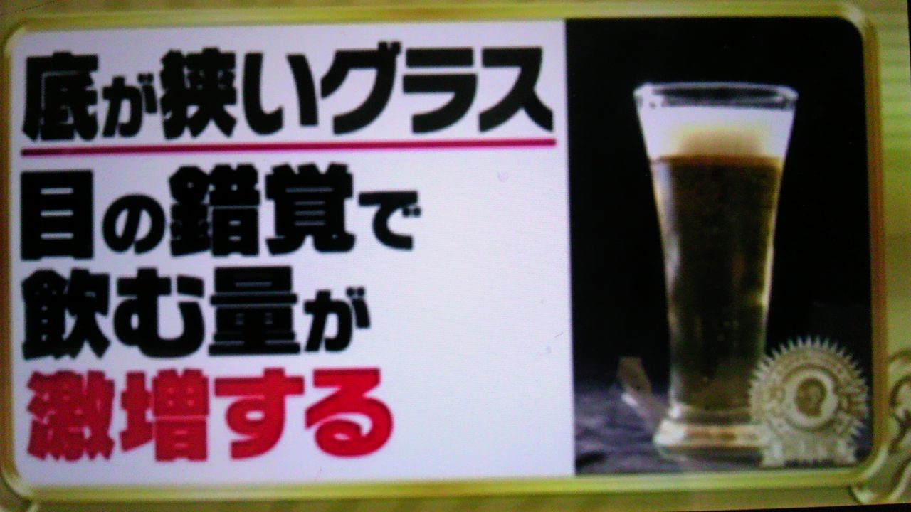 つまり、底が狭いグラスだと、目の錯覚で飲んでいる量を見誤り、お酒を飲む量が増える。
