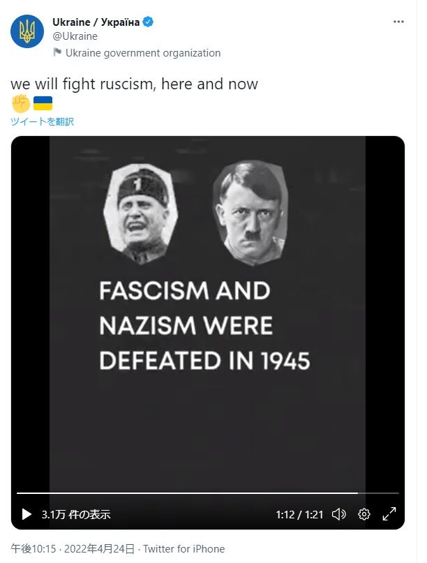 【速報】ウクライナ政府、日和る 昭和天皇だけ消してファシズム動画を再アップ 日本大勝利!!