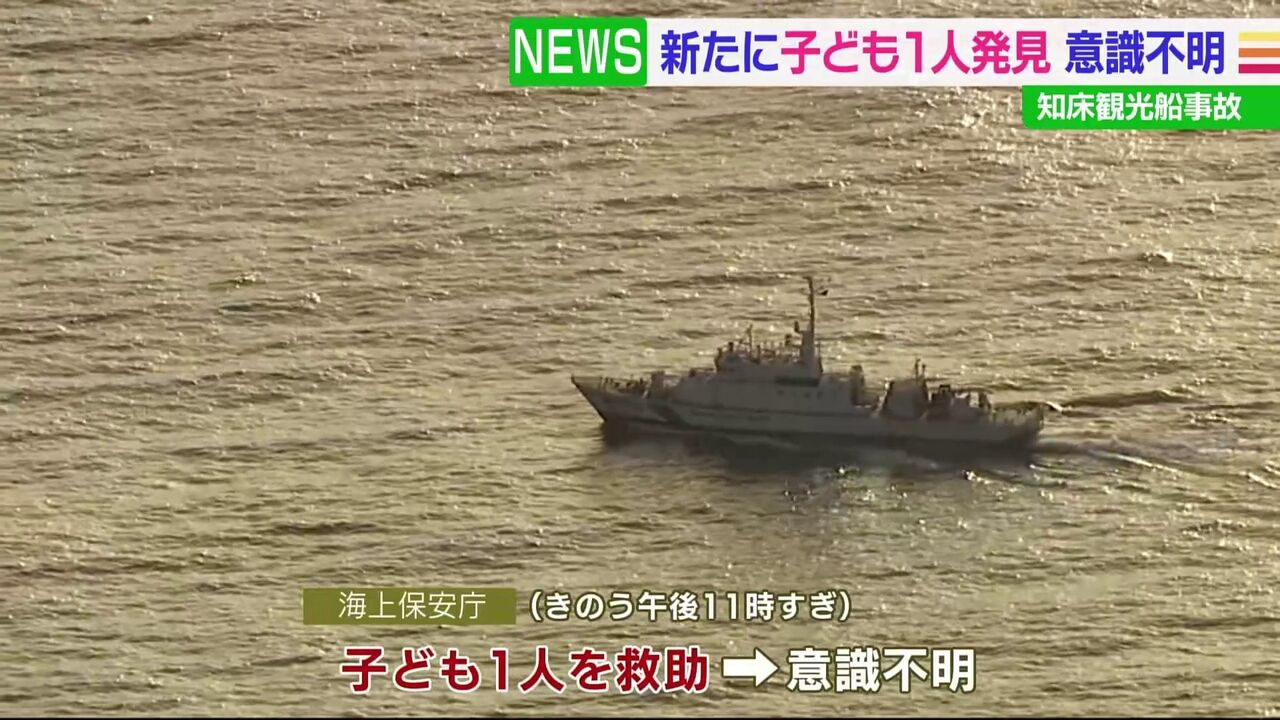 子ども1人を発見、安否は不明 知床観光船事故 発見者は計11人に