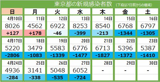 【速報】ドキドキ・・・本日(4/27)の気になる東京都の新規感染者数は⁉
