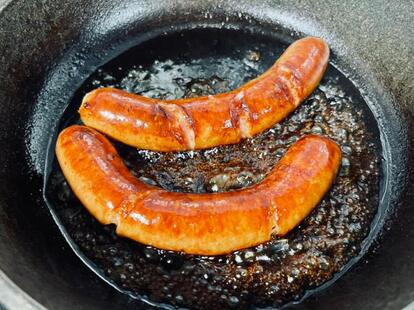 続けて「最初は1本ずつ焼いてたけど、結局追加でもう一本たべたくなるので、最近は最初から2本焼くことにしました」とつづり「写真じゃわかりにくいですが、直径22cmのフライパンに結構ぎゅうぎゅう」と説明。「朝から塩分過多ですが」と述べつつ「今朝は、それプラス甘味で、さらにヤバ目な朝飯。ローソンのモンブランケーキ」と写真とともに告白した。