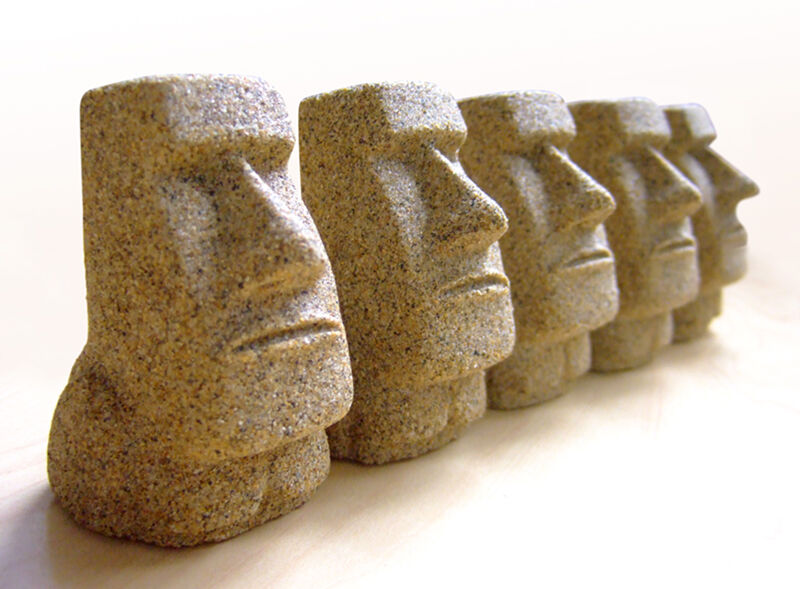 1つのモアイを固めるのに使われる接着剤の量は一般的な接着剤の約20分の1の量で製造されている。