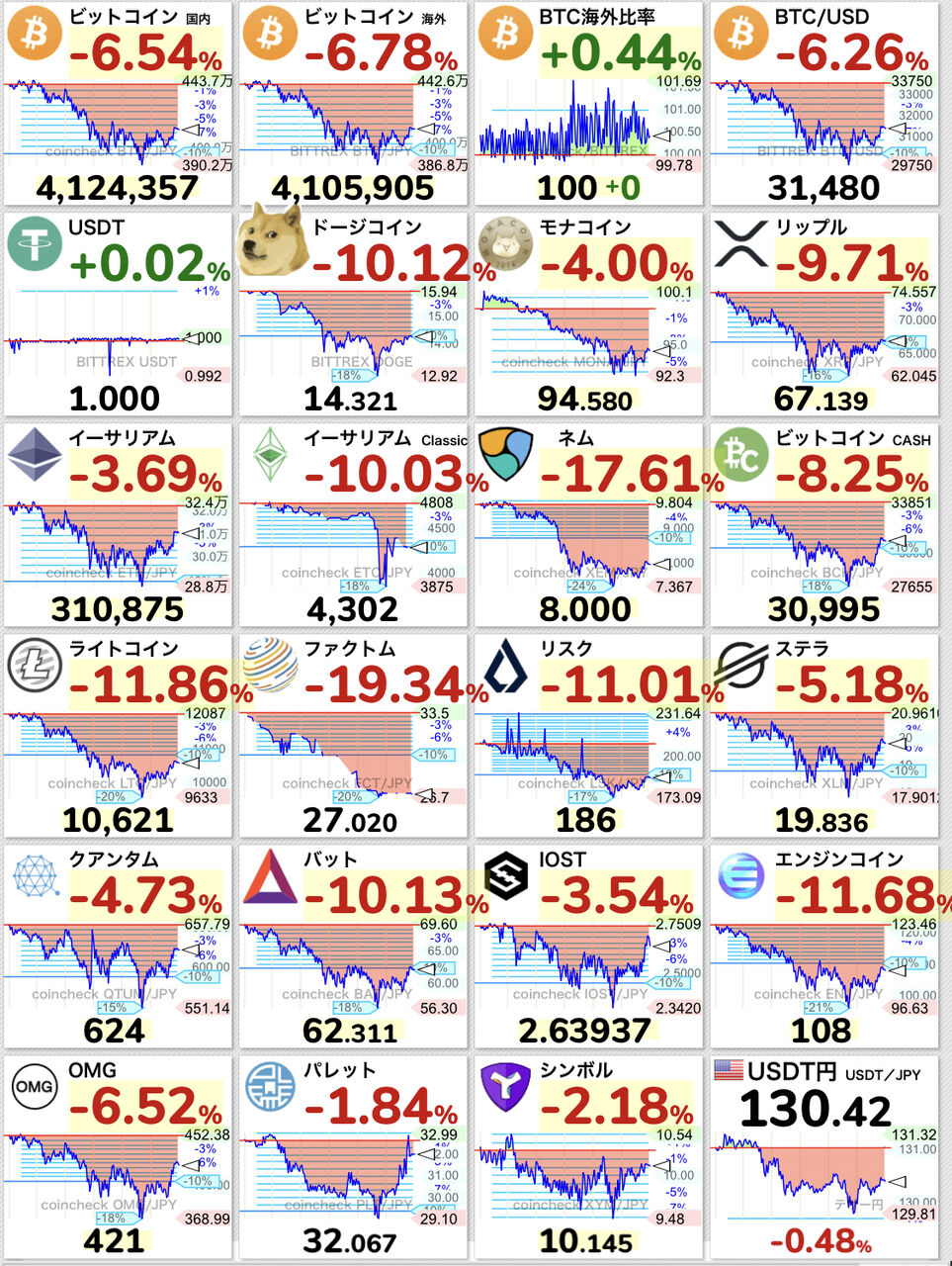 【速報】ビットコイン急落、仮想通貨全面安・・・