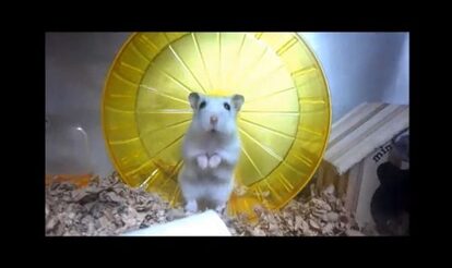 奇跡のショットを見せてくれたのは、ジャンガリアンハムスターの大福ちゃん。黄色の回し車に乗っていたのですね。