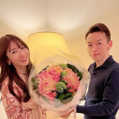 続けて「母の日当日は…。夜になってから突然の花束頂きました!」と誉幸さんから花束を受け取る自身の写真を公開し「花が大好きな義母の元で育った社長からのサプライズ!」と嬉しそうに報告。花束について「私のパーソナルカラーを意識して花を選んでくれたそうです!」と明かし「大好きな色ばかり!!本当にありがとうございます」と誉幸さんとの2ショットも公開した。