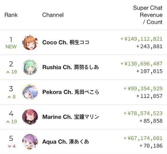 【悲報】ホロライブVtuberさん、スパチャランキング1位から順に消えてると話題に…