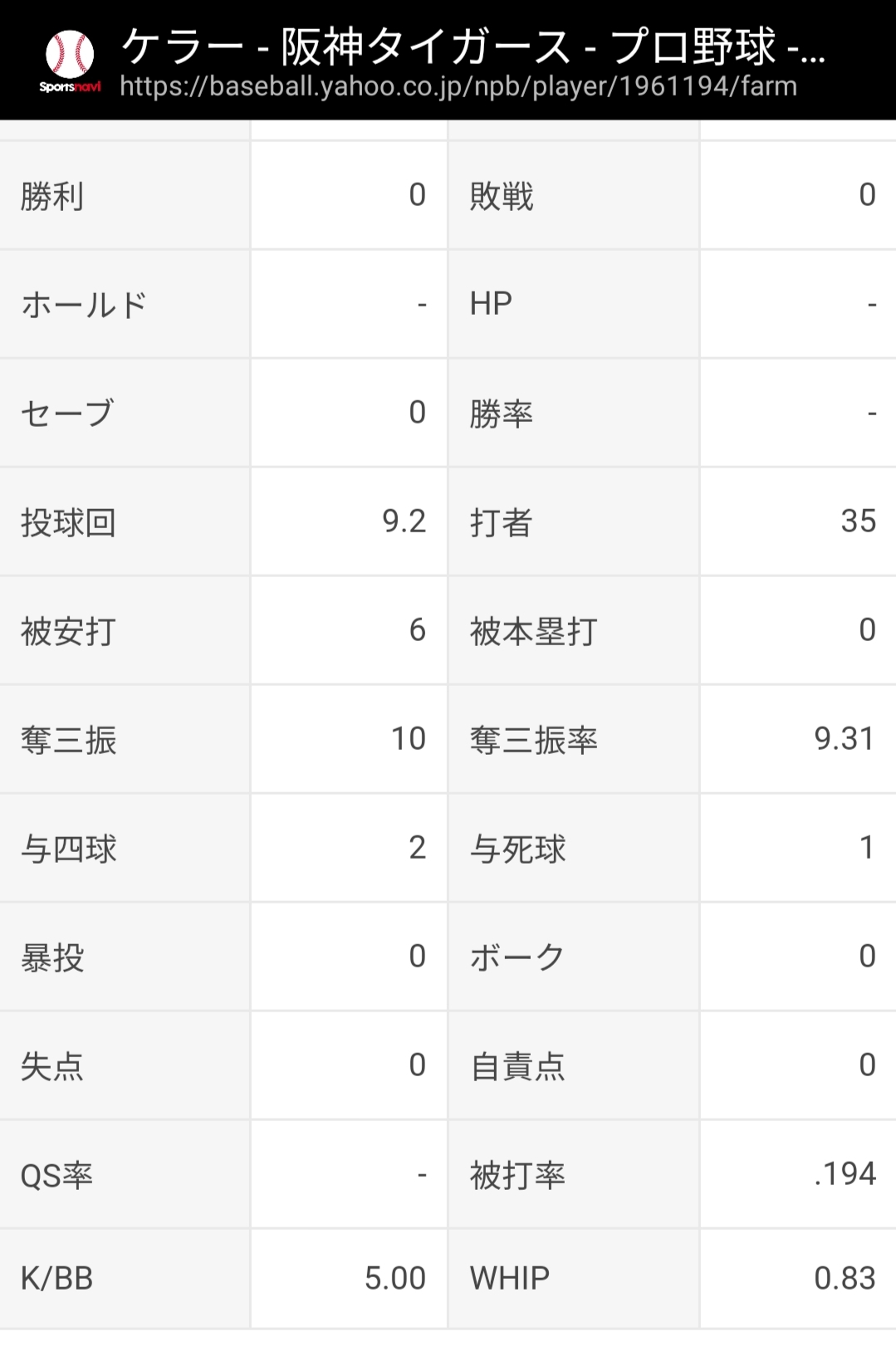 ケラー 登板11 10 2/3回 三振11 四球2 防御率0.00 ←こいつが1軍昇格できない理由