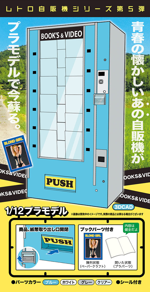 1970年代によく見られた「成人向け雑誌の自動販売機」のプラモデルを、ハセガワが7月21日ごろに「レトロ自販機(ブックベンダー)」として発売します。価格は1540円。