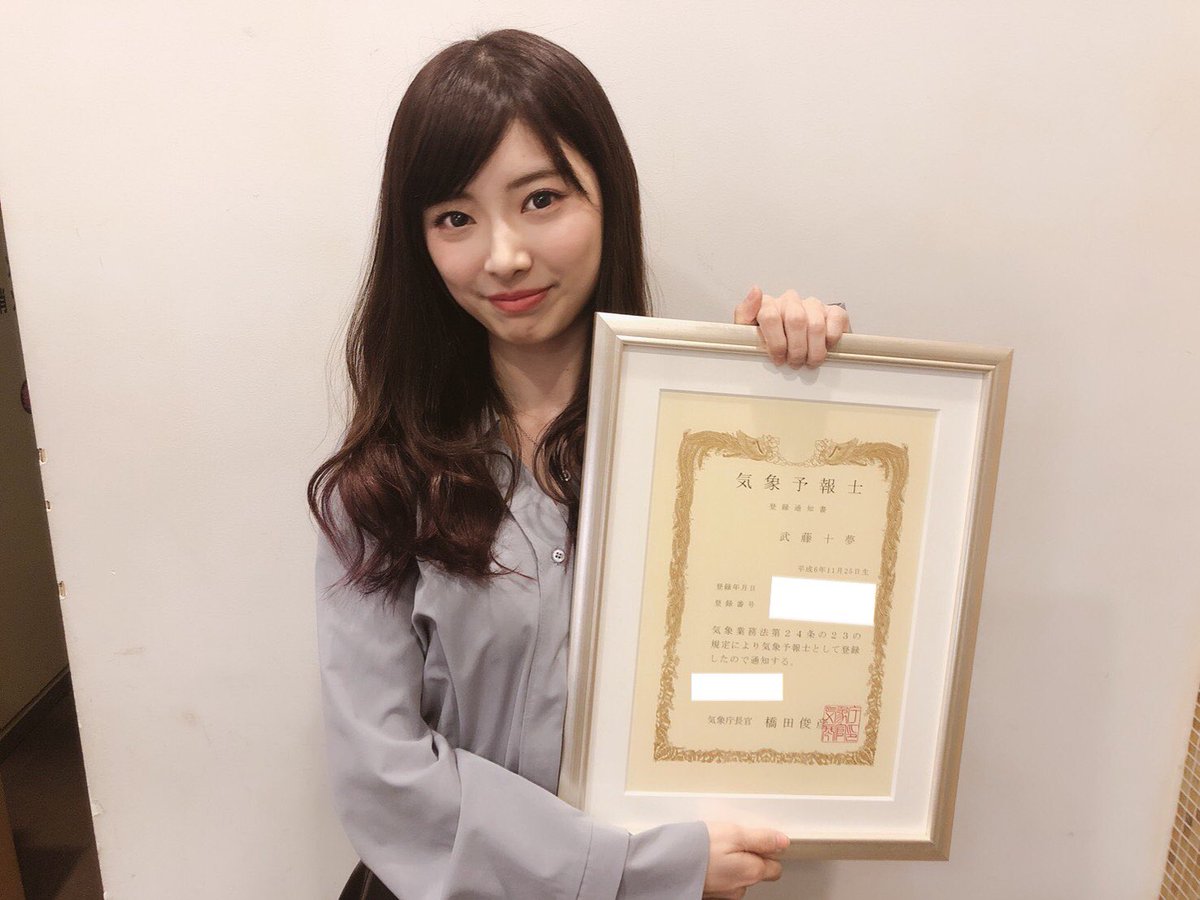気象予報士、ファイナンシャル・プランナーに次ぐ資格について、武藤は「最近は自然災害が増えてきているので、これからは気象予報士としても防災士としても、皆さんがより安全にすごせるよう、正しい知識を持って適切な判断をして、情報をお伝え出来たらなと思います。頑張ります」とコメントしている。
