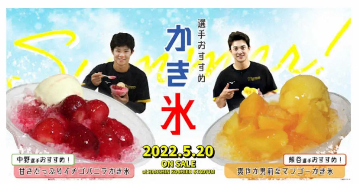 阪神は16日、甲子園球場コラボグルメキャンペーンとして今月20日(金)の巨人3連戦からレギュラーシーズン終了まで中野、熊谷オリジナルメニューのかき氷が新登場する。
