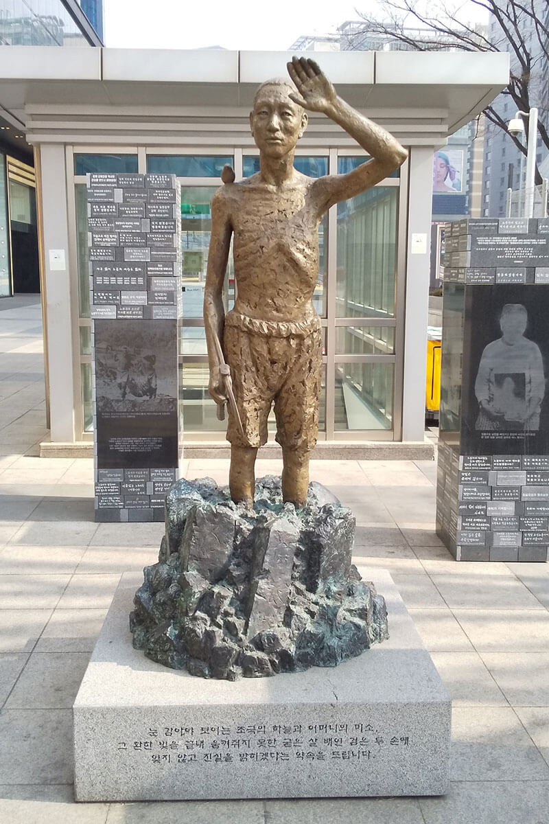ソウル市の龍山駅前にある徴用工像(新潮社)