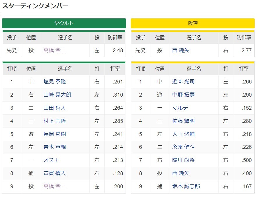 ヤクルトー阪神 スタメン 神宮球場 2022/5/18