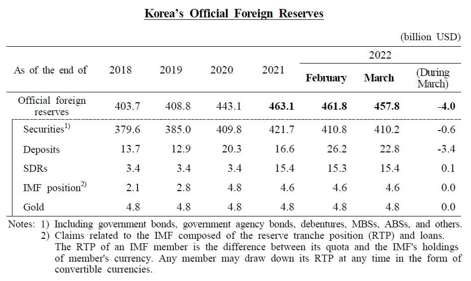 この03月の外貨準備高の公表時、『韓国銀行』はプレスリリースで以下のように説明していました。