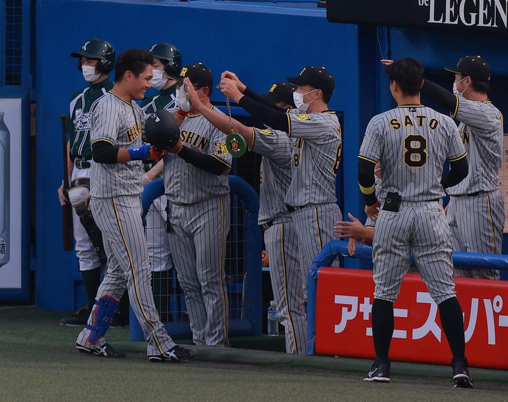 「まあまあ、そりゃ10号は打つやろうし。まあ、でも輝もその前、昨日といいところで打ってないんで。それよりも今日は、展開的には悠輔のあそこで輝が打てなくて、あの中でタイムリーでも大きいところで3ラン(三回2死一、三塁で6号3ラン)にしたっていうところは、やっぱり大きいんで。で、マルテにもホームラン(一回の先制1号ソロ)が出たっていう、チームとしてはそういうところが大きいなと思うけど。