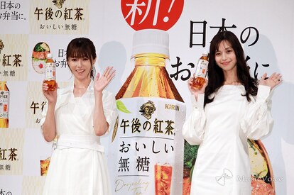 深田恭子、中条あやみが19日、都内で行われた『後味スッキリ!「日本のお弁当に。新!キリン 午後の紅茶 おいしい無糖」キックオフイベント』に登壇した。