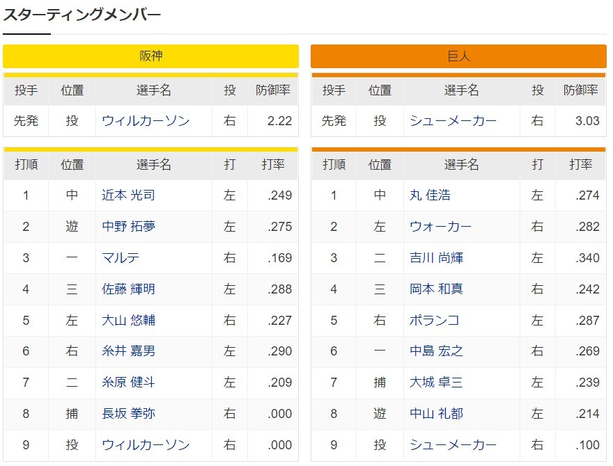 阪神ー巨人 スタメン 甲子園球場 2022/5/21