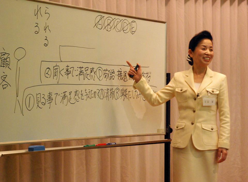 講師で登場した平林氏は、女性スタッフの塩山さんと初めて対面していきなり「すごい仏頂面で。コミュニケーションの第一歩は相手を見ること。下を見ずに私を見ていただけたら」と注意した。塩山さんが「はい…」とおじぎすると「下を見るな!言うてるやろ!」と一喝。思わず、顔をしかめる塩山さんに「泣くな!ええ年して。何べん言うても下見るな、あんた」と追い打ちをかけた。