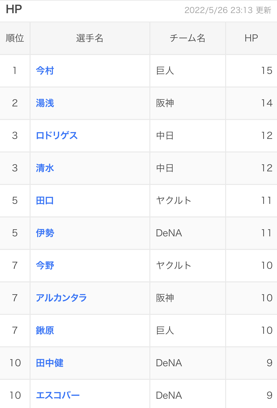 ・HP3位で堅実に仕事してる中日ロドリゲス