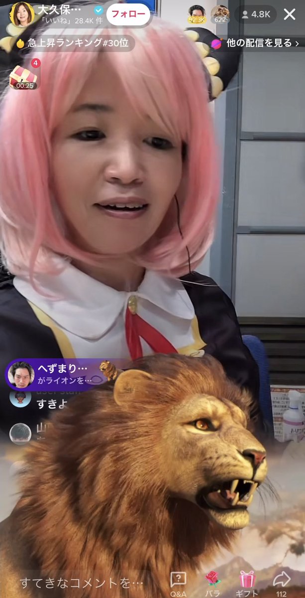 元迷惑系ユーチューバーのへずまりゅうがお笑いタレントの大久保佳代子に怒り心頭だ。大久保は28日、午後6時から動画投稿アプリ「tik tok」でコスプレ姿でライブ配信を開始。売名目的もあってへずまはライブ中にライオンの高額〝投げ銭〟を2度、投入した。通常なら「○○さん、ありがとうございます」と読まれるのだが、へずまは〝スルー〟されたという。