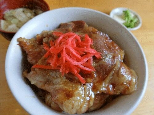 甘辛いタレに豚肉を絡ませて、紅しょうが乗せて😁