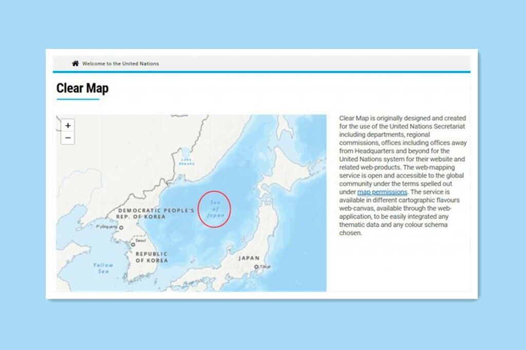 2022年5月31日、韓国・東亜日報は「国連が運営する地図サイトで東海(トンヘ)が『日本海』と単独表記されていることを誠信女子大学の徐敬徳(ソ・ギョンドク)教授が指摘し、強く抗議した」と伝えた。