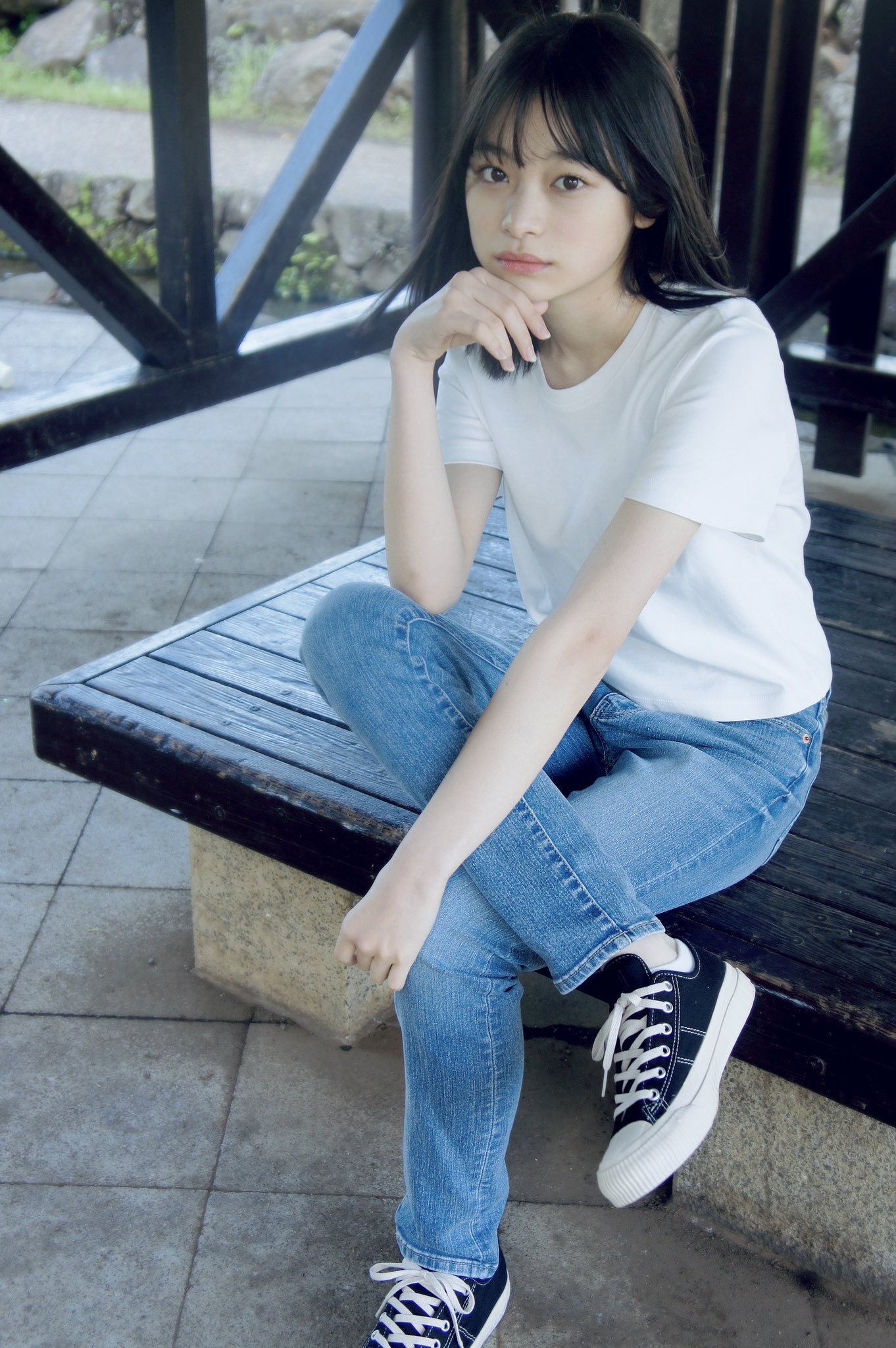 【画像】無地のTシャツにジーンズ、コンバースのダサい女の子www