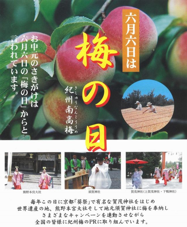 この日には京都の上賀茂神社と下鴨神社に梅を奉納し、紀州梅のPRのためさまざまなキャンペーンを行っている。