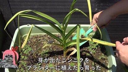 芽が出たニンニクをプランターに植えてみた投稿者のmakeおっさん。ニンニクはちゃんと育ちました。