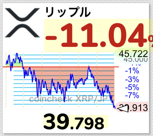 【速報】仮想通貨リップル40円割れ・・・【XRP】